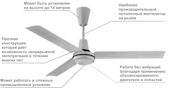 Тип вентилятора: осевые лопатки