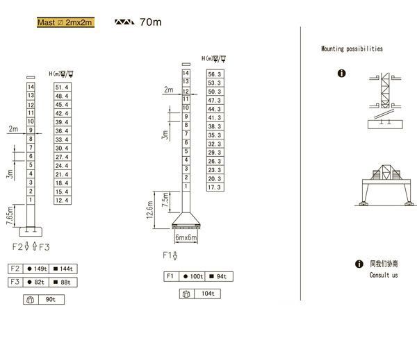 Размеры секций башни, м 2,0 х 2,0 х 3,0